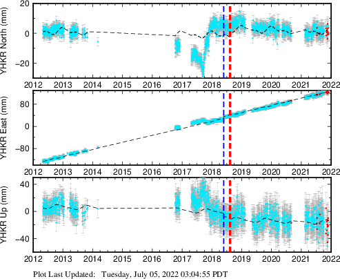 | Decimal date | N offset (mm) | N uncertainty (mm) | E offset (mm) | E uncertainty (mm) | U offset (mm) | U uncertainty (mm) | Type | Earthquake magnitude | Earthquake information | Distance from epicenter (km) | |